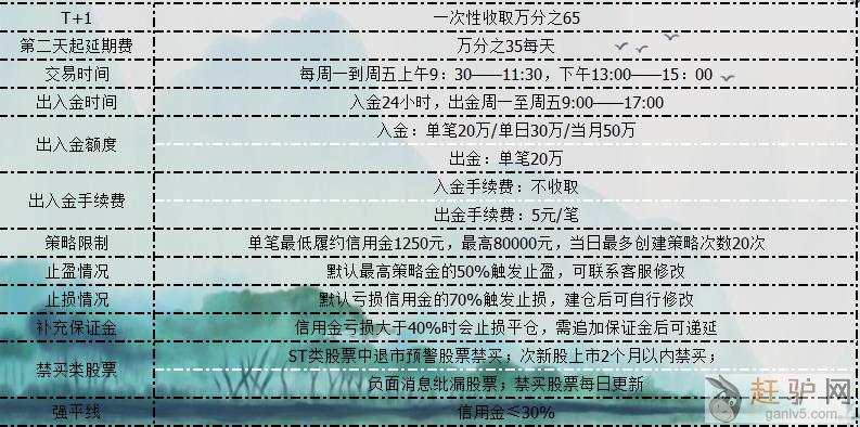 平台费用:综合手续费万65,递延费收万35来源www.ganlv5.com